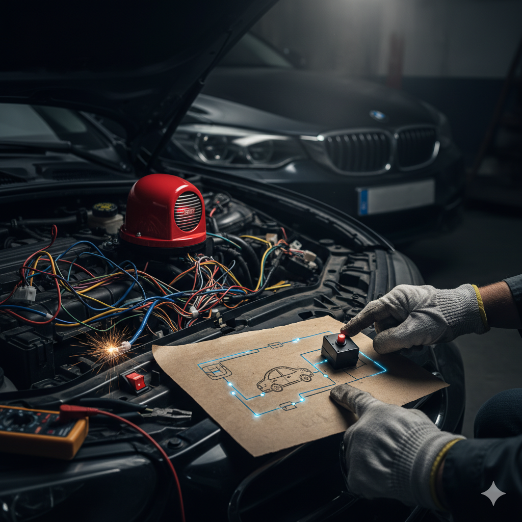 • サイレンの設置場所: サイレンはエンジンルームの奥など、簡単には手が届かず、コードが切断されにくい場所に設置しましょう。
