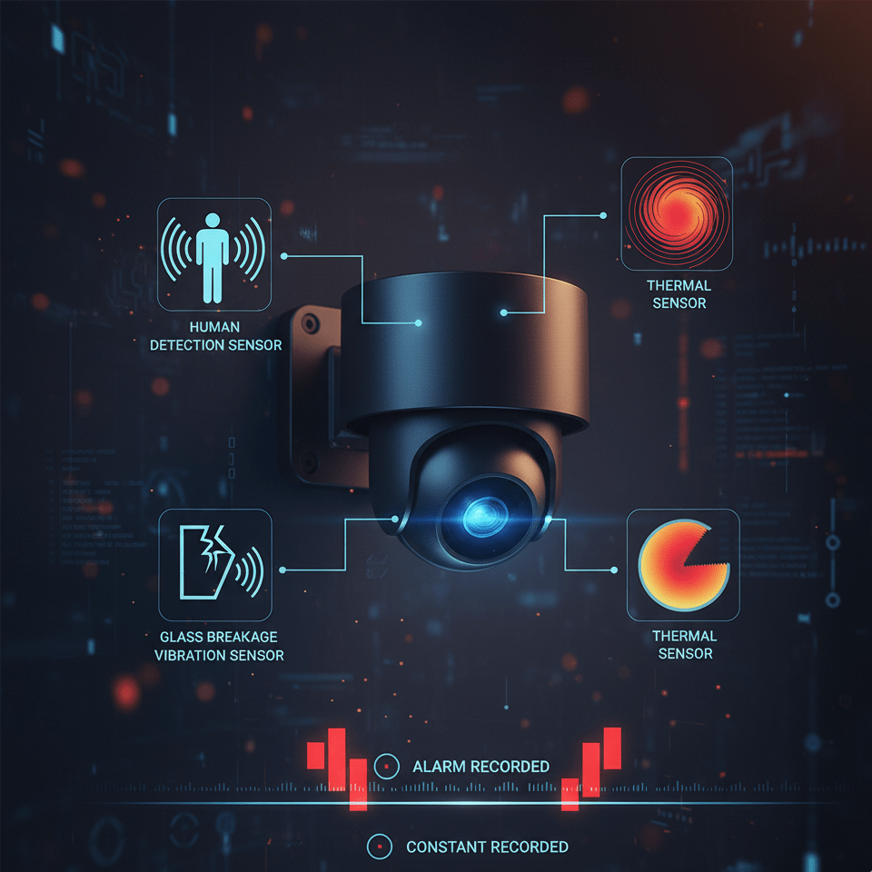 防犯カメラは、ただ設置するだけでも一定の抑止効果がありますが、常時録画に加えて各種センサーを組み合わせることで、その防犯効果は格段に向上します。