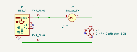 USB入力:+5VのUSB電源ラインは、抵抗(R_base)を介してダーリントントランジスタのベースに接続されます。